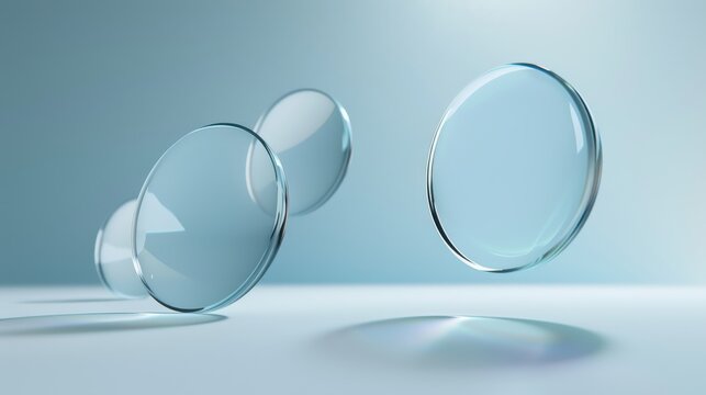 Three clear glass lenses against a blue gradient background