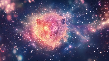 Astrological Leo symbol glowing in a cosmic array of bright stars and constellations