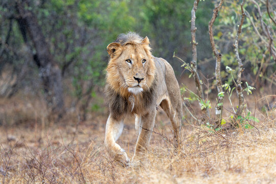 Dominant male lion hanging around in the green season in the Kruger National Park in South Africa