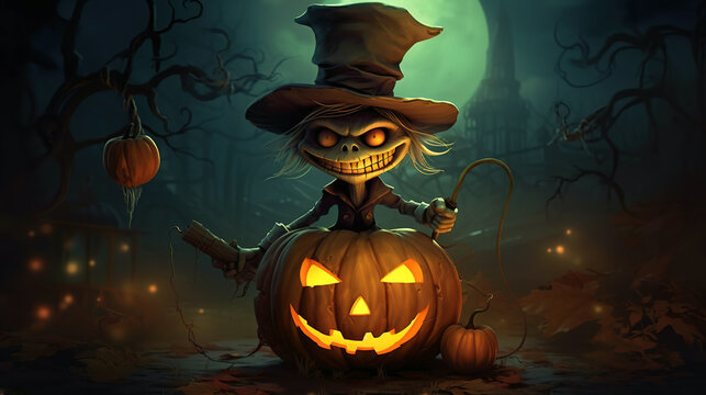 halloween background with pumpkin and leprechaun , generative ai