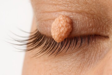 Macro close-up of eyelid papilloma highlighting detailed skin texture and medical condition for dermatological study and diagnosis
