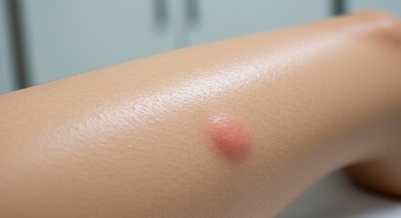 Close-up view of a small skin lesion on a person's shoulder.