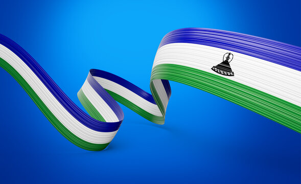 3d Flag Of Lesotho 3d Shiny Waving Lesotho Ribbon Flag On Blue Background 3d Illustration