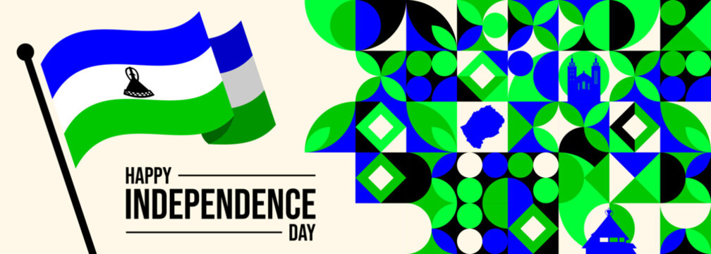 Lesotho independence day celebration banner in bold colors
