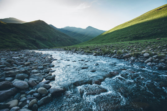 landscape of the Bokong river and rapids in the Lesotho highlands