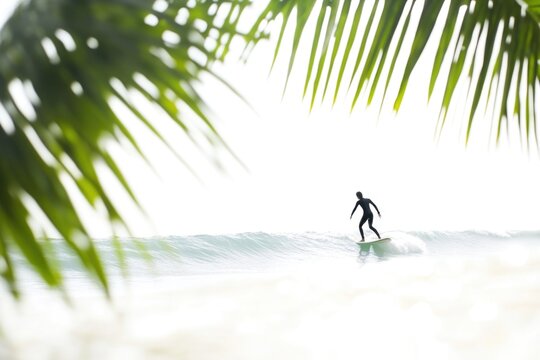 A person riding a surfboard on the crest of a large wave, perfect for beach and outdoor themed images