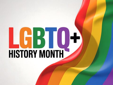 Celebrate lgbtq history month with vibrant rainbow flag and colorful text