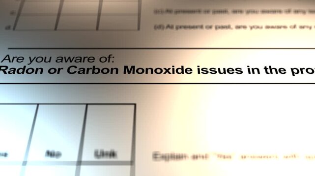 A Housing Sellers Disclosure Form - Radon or Carbon Monoxide