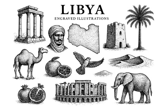 Exploring the Rich Heritage of Libya Through Engraved Illustrations in Classic Black and White