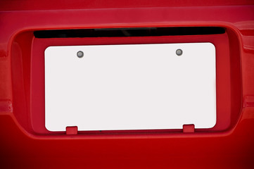 White Blank License Plate On Red Car