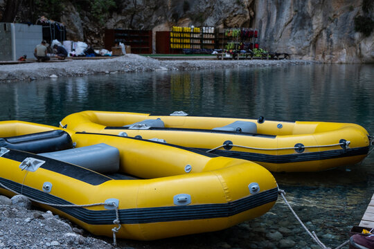 SOS at Sea Life Raft Floating on Troubled Waters. Creative Banner. Copyspace image