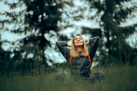 woman enjoying the sun feeling joyful with open arms