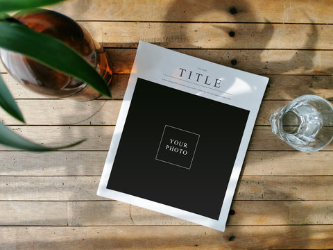 Cozy Holiday Evening: Woman Holds Blank Magazine by Christmas Tree