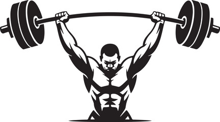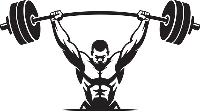 Muscular Man Lifting a Barbell Overhead in a Stylized Black and White Illustration weightlifter