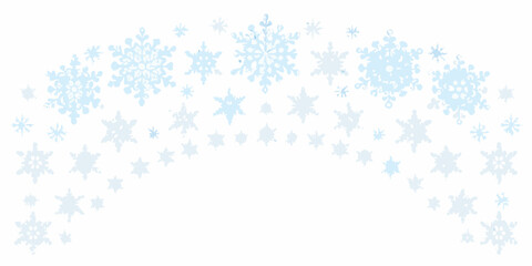 A delicate arrangement of light blue snowflakes forming a curved airy design
