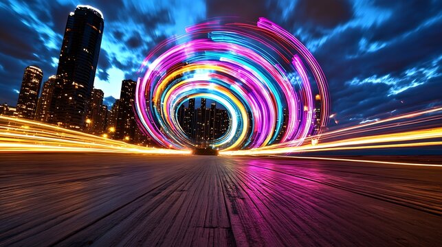 Light painting technique involving long exposure photography capturing the motion of a light source to create unique artistic images