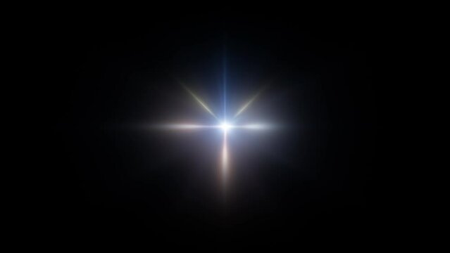Abstract loop center glow blue stars streaks optical light lens flares flickering animation on black background.4K seamless loop dynamic kinetic bright star light