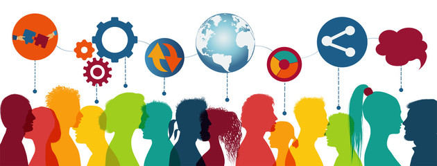 Sharing ideas.Communication network diverse people.Network teamwork.Multiethnic.Connection and exchange of ideas - data or questions.Future technology.Mind Map.Upload download data