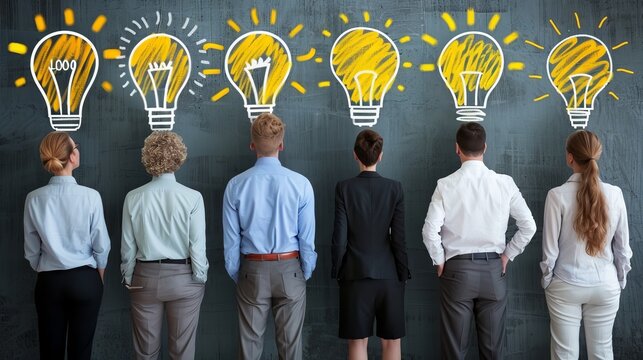 Collaborative idea sharing. Teamwork for innovation. Business team sharing lightbulb ideas, symbolizing teamwork, brainstorming, and innovative solutions.