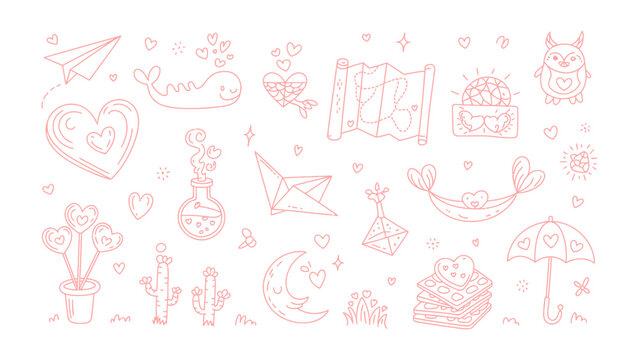 Heart Pattern Illustration. Freeform heart doodles arranged in a lighthearted decorative pattern, modern flat vector illustration