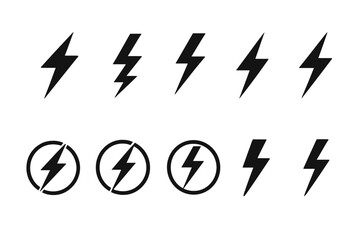 flash thunder power icon set, flash lightning bolt icon with thunder bolt collection - Electric power icon symbol - Power energy icon sign