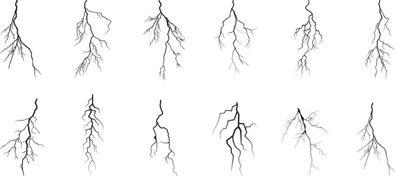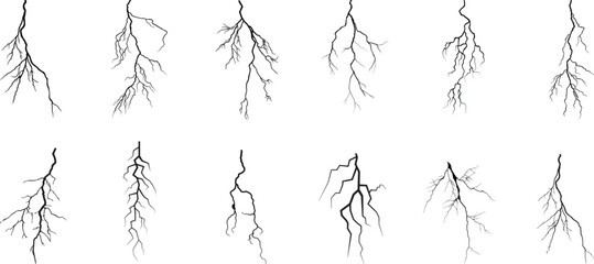 Vector lightning silhouettes set. Elements for thunderstorm.Vector Graphic Elements Collection