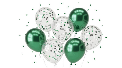 Vector illustration of green and clear balloons with confetti on a white background