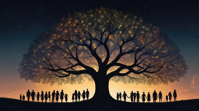 A tree with figures representing family and ancestry, symbolizing a lineage