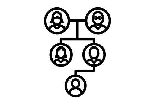 Minimal black family lineage vector icon symbolizing heritage, ancestry, and family structure, ideal for educational, cultural, or genealogy use.