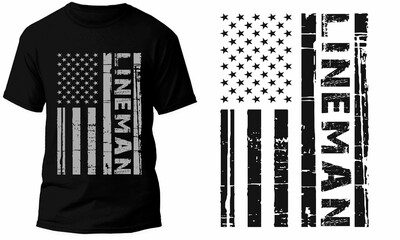 Lineman American Flag T Shirt Design