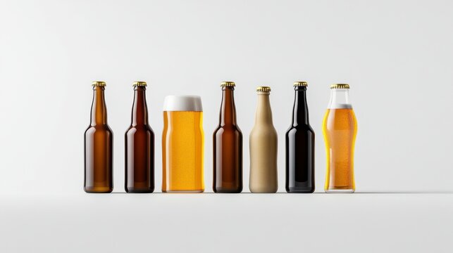 A Symphony of Brews: A captivating lineup of beer glasses, each holding a unique shade and froth, arranged in a visually stunning display, celebrating the artistry and diversity of craft brewing.