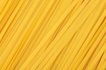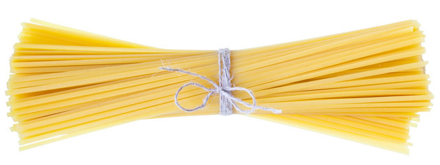 Uncooked durum fettuccine pasta isolated on white background. Raw spaghetti or noodles