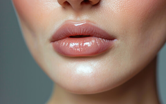 Close Up: Beautiful patient receiving Botox injection in lips by female doctor for cosmetic enhancement and skincare