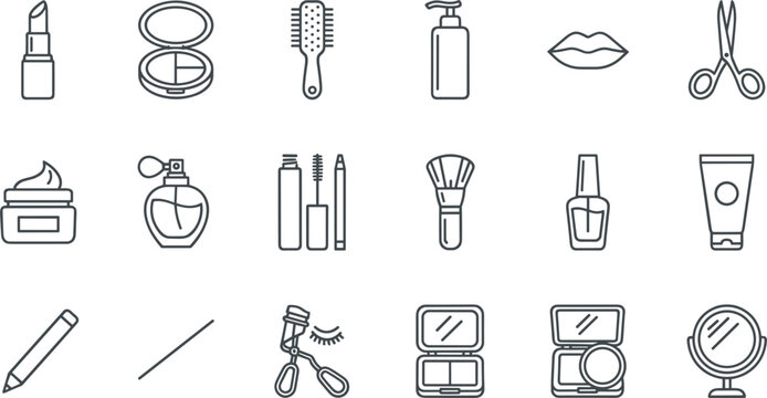 Minimalist line style icons for beauty, cosmetic, and personal care products