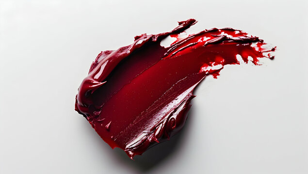 Close up application of vibrant red liquid lipstick and gloss on lips, showcasing beauty and makeup artistry with precision brush for stunning glossy finish