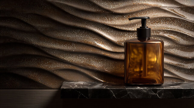 Ceramic Soap Dispenser Mockup With Metallic Pump Floating On Soft Green Background With Natural Light