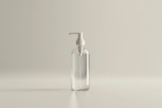 Empty cosmetic bottles with dispensers on a clear white background, isolated object, suitable for design purposes. Multicolor.