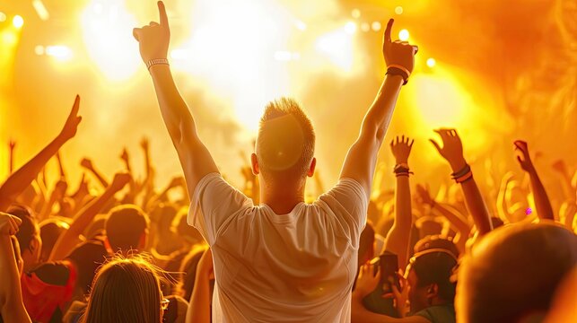 Young man enjoying music with headphones, closed eyes, relaxed expression, casual attire, white isolated background.
