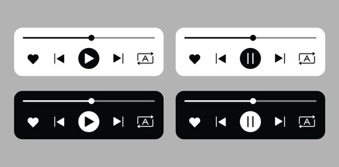 Music player play pause forward backward user interface (ui) design background. Light and dark color theme