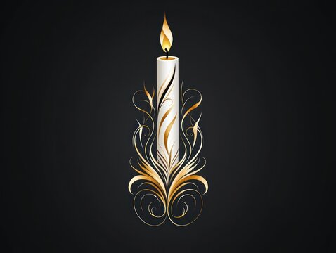 A warm light radiates from a burning candle surrounded by elegant swirling designs, symbolizing faith and hope in a spiritual setting during important Christian events