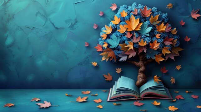 International literacy day concept with tree with books like leaves. Literacy, education, knowledge concept with color books on tree on white background, focus cover all object
