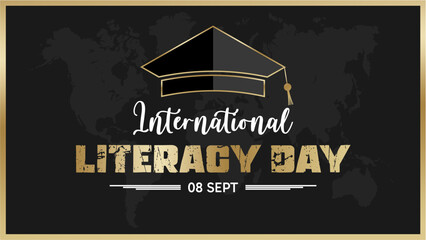 international literacy day with graduation cap, and world islands as background, september 08