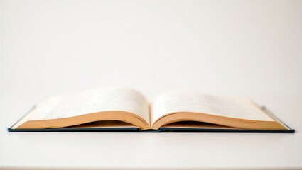 An open book resting on a clean white surface, showcasing its pages. Ideal for educational and literary themes.
