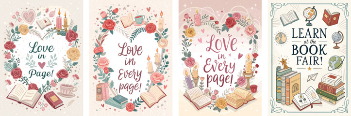Beautiful floral designs featuring handwritten text for a book fair event or scholar gathering