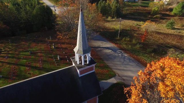 Beautiful little rural church and cemetery amid Autumn colors.