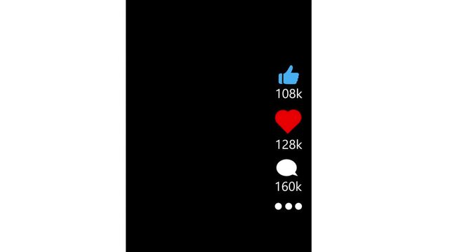 Vertical Video Overlay of Animated Reels Engagement Icons Growing , Likes, Comments, Shares. Social Media Elements.Social Media Management, Social Media Marketing.