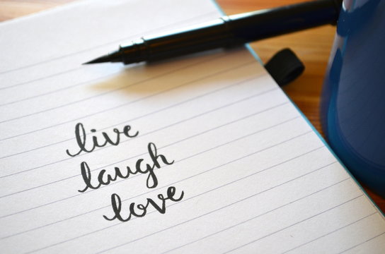 LIVE LAUGH LOVE. Motivation quote. Calligraphy text live, laugh, love. Design print for t shirt, pin label, badges sticker greeting card, Valentine day, wedding. Home decor Vector illustration.