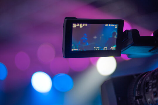 Modern dance stage light background with spotlight illuminated for modern dance production stage. Empty stage with dynamic color washes. Stage lighting art design. Entertainment show.