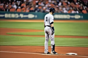 Baseball Player on Field, Stadium Crowd Watching, Exciting Game, Generative AI