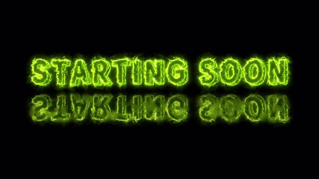 Starting soon neon text animation suitable for video live streaming. Animated neon starting soon text on a transparent background, advertising next business concept. Glowing Light 4K.